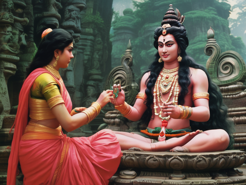 Lalitā sahasranāma Nijājñā-rūpa-nigamā निजाज्ञा-रूप-निगमा (287), Lalitha provides the original knowledge or Truth to Her devotees through the teachings of the Vedas. This nāma also subtly conveys that She is the singular primordial Truth. The nāma Veda-vedyā वेद-वेद्या (335) indicates Abirāmi can be known through the Vedas. It is interesting to note that the central part of the four Vedas is Śrī Rudram and the 8th Anuvākaṁ or the stanza of Śrī Rudraṁ, contains the Nama-śivāya mantra. If we progress further to the center of the mantra, it contains the Akshara “Śi”, which attains its quality only due to the syllable sound Īkāra in it. Abirāmi’s bījam is also Īṁ, without which even the root bījas like Śrīṁ, hrīṁ, and klīṁ, cannot manifest into existence. Similarly, the Namaśivāya mantra without the syllable “Ī”, would not become a supreme mantra. Thus without Śakti, Śiva cannot manifest, which is conveyed in the Soundarya Lahari Verse 1. Vedas therefore contain Śakti as their central aspect and as part of the Nama-śivāya mantra. She also originates the Vedas as Veda-jananī वेद-जननी (338)