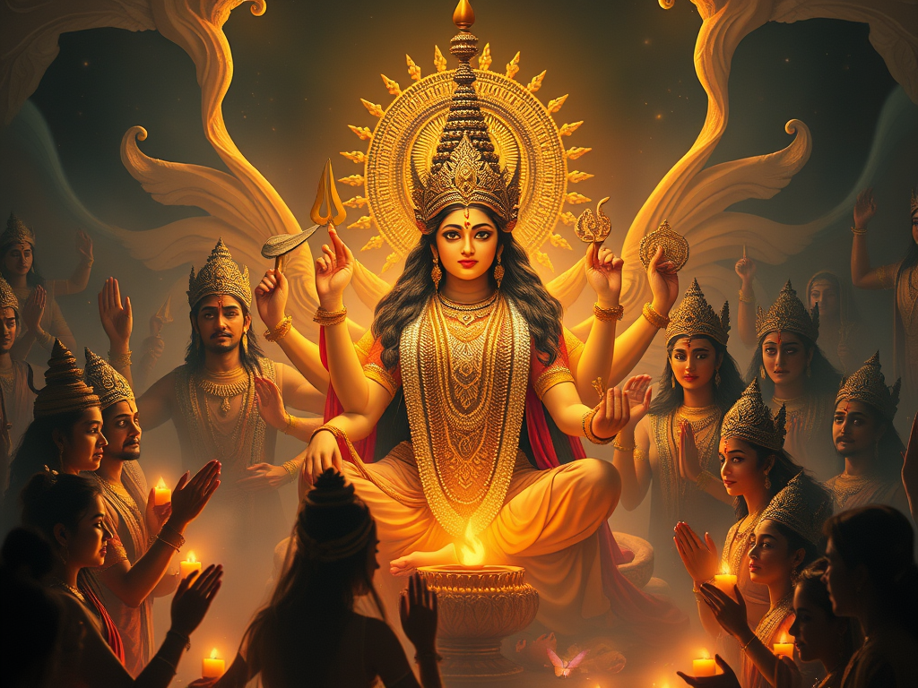 Devas have worshipped Devi on multiple occasions, the very prominent references being the praises that they have sung which can be found in the Devi Mahatmyam or Durga Saptaśati in chapter 1 where Brahmā sings Her praise to remove His danger from Madhu and Kaiṭaba. Again in chapter 4 after the slaying of Mahishasura, the Devas sing Her praises and finally in Chapter 11 after the Śumba and Niśumba’s destruction, the Devas once again sang Her eulogies. Vantippavar also means, people come and fall at Her feet and pay their respects. Saundarya Lahari verse 2 says that the trinity collects the dust on Devi’s feet when they pay their obeisance and with that dust they create, sustain and destroy the universe. The subtle understanding here is that, those who worship Devi in a proper manner, will become one among the gods.